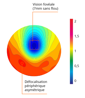 La Technologie Slowpie répartit la puissance positive à la périphérie, calibrée en fonction de l’asymétrie naturelle de la rétine.